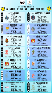 2024-25V.LEAGUEのリオレーナ全日程をお知らせします。