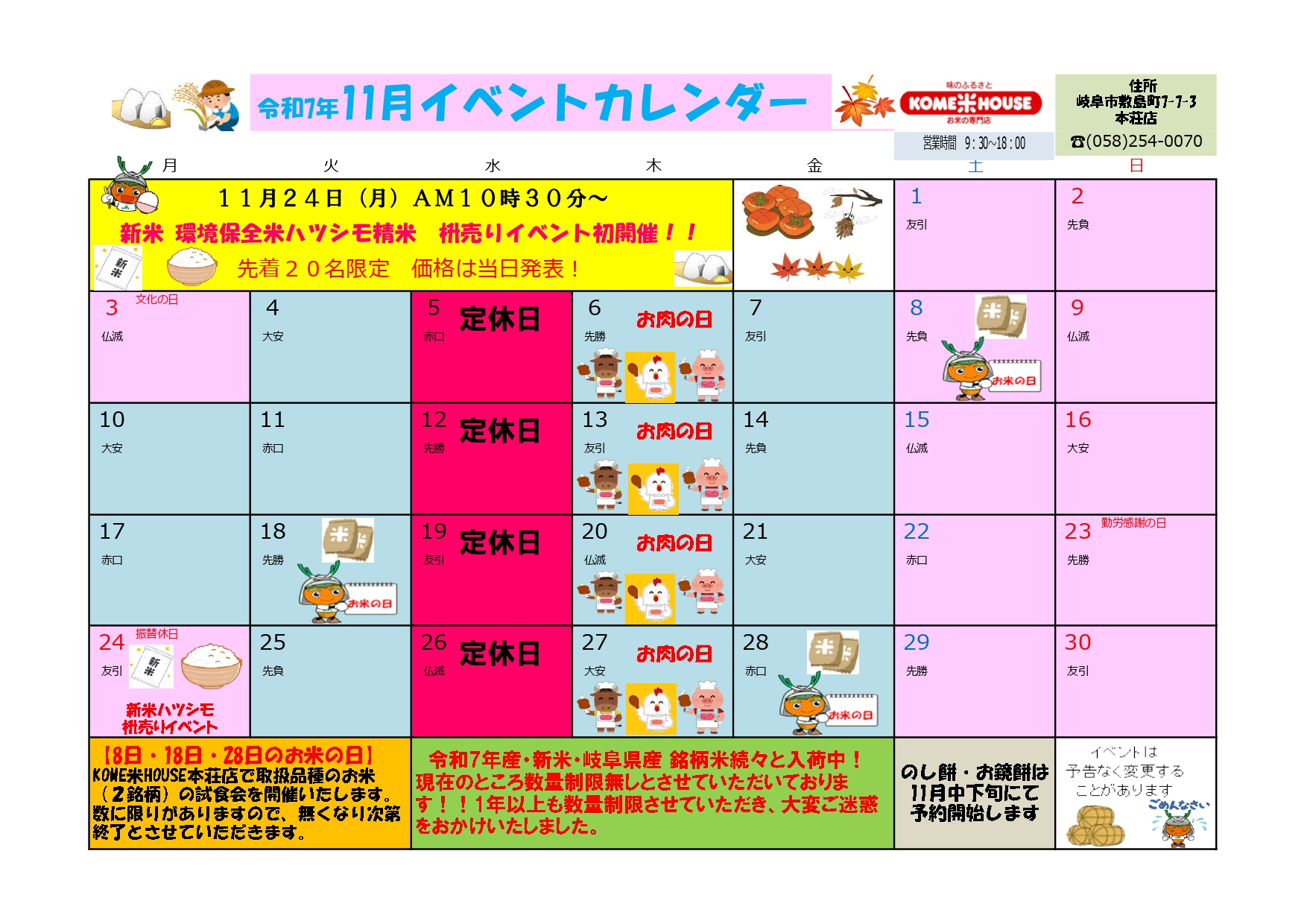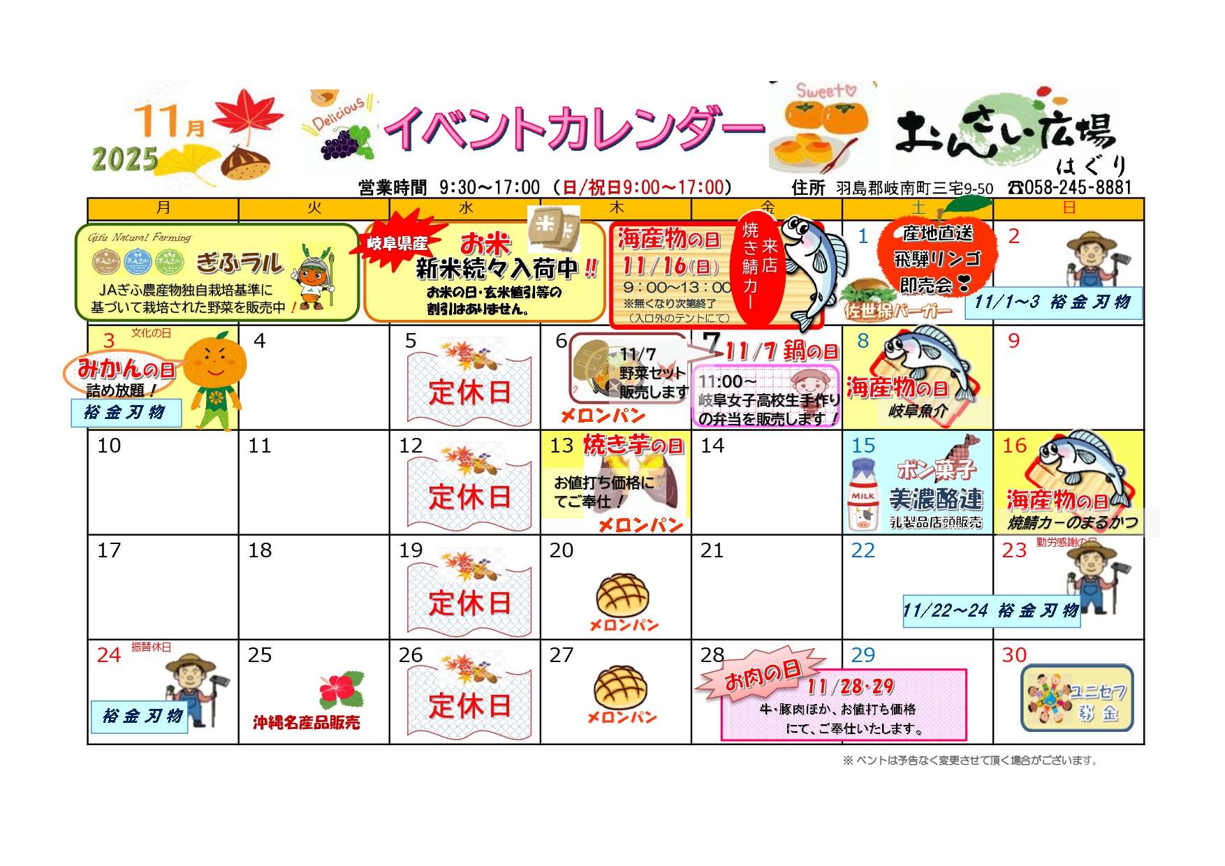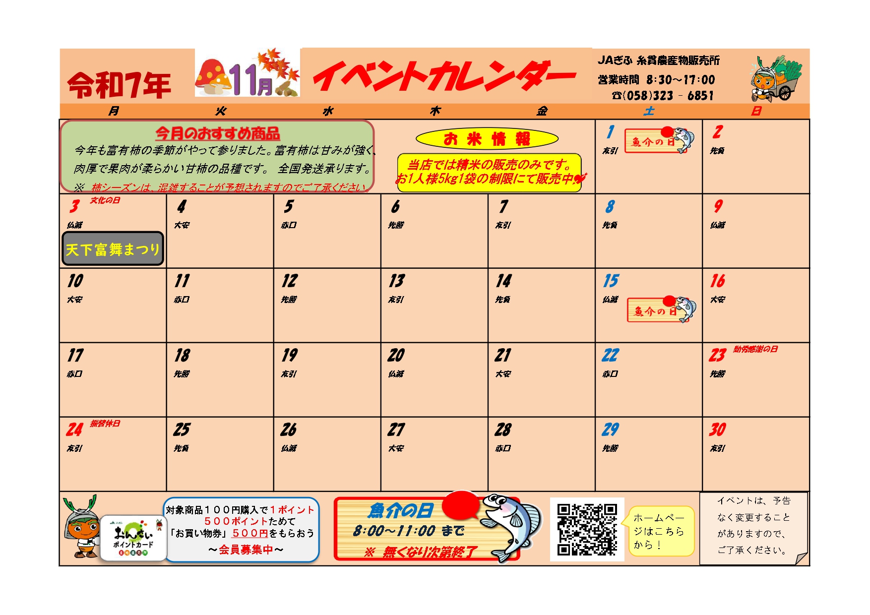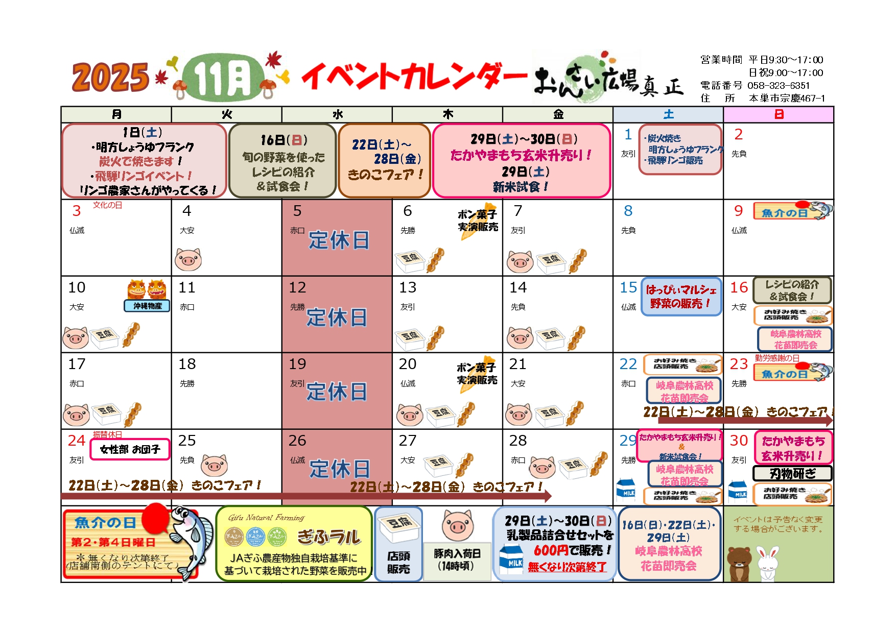 ≫ 直売所 6店舗イベントカレンダー11月