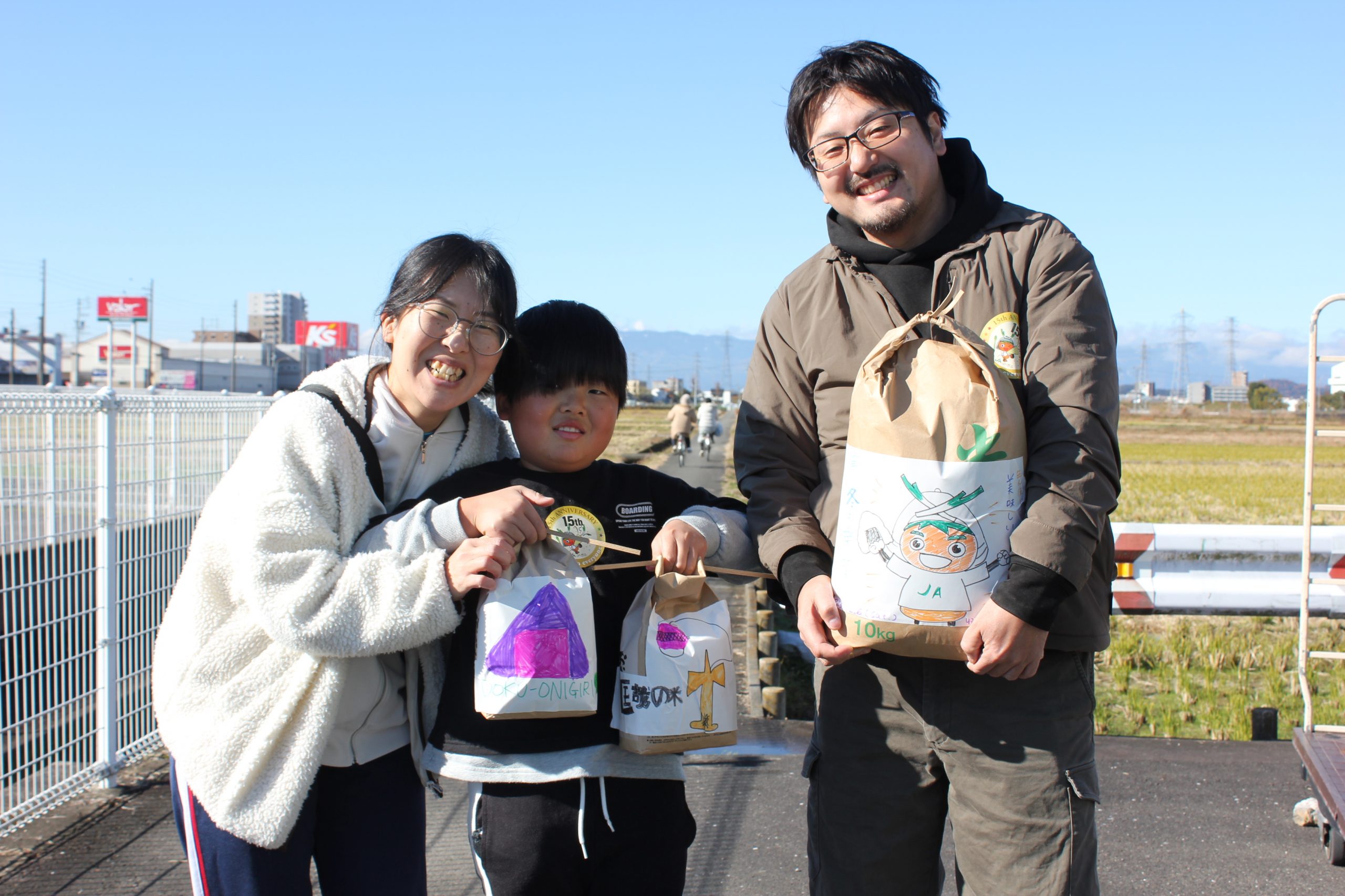 農業スクールに3回以上参加された方一人につき、親子らで生産に関わったハツシモ(玄米)10㌔に加え、JAぎふ産直店舗で農畜産物を10,000円以上購入した方に2㌔、20,000円以上購入した方に4㌔をプレゼントしました。