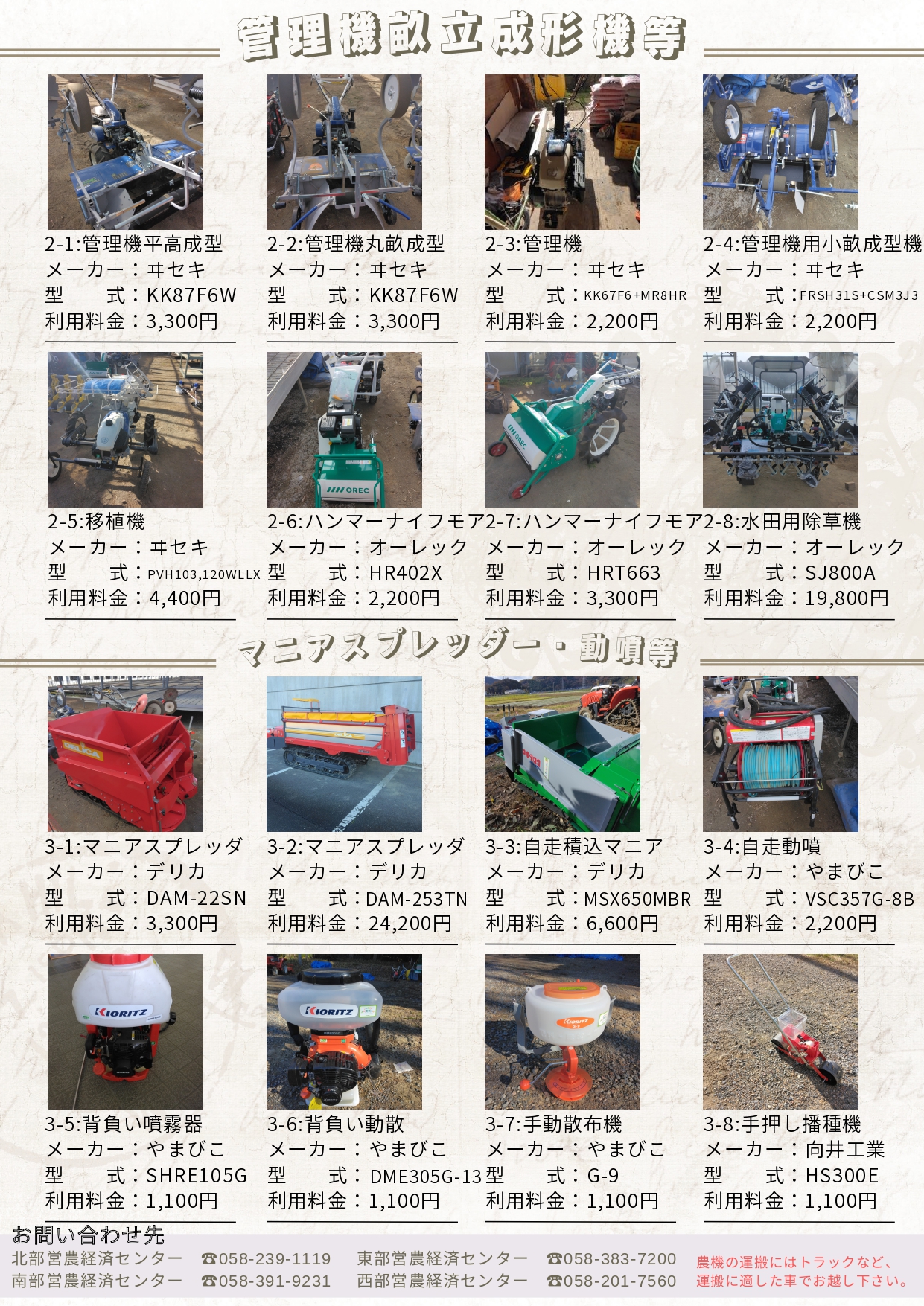 JAぎふでは、有機栽培で必要な農機のレンタルを行っています。