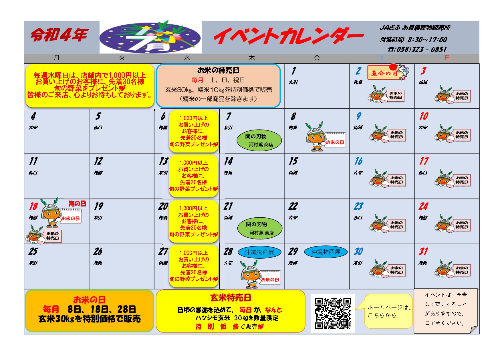 直売所 5店舗イベントカレンダー7月