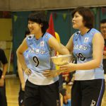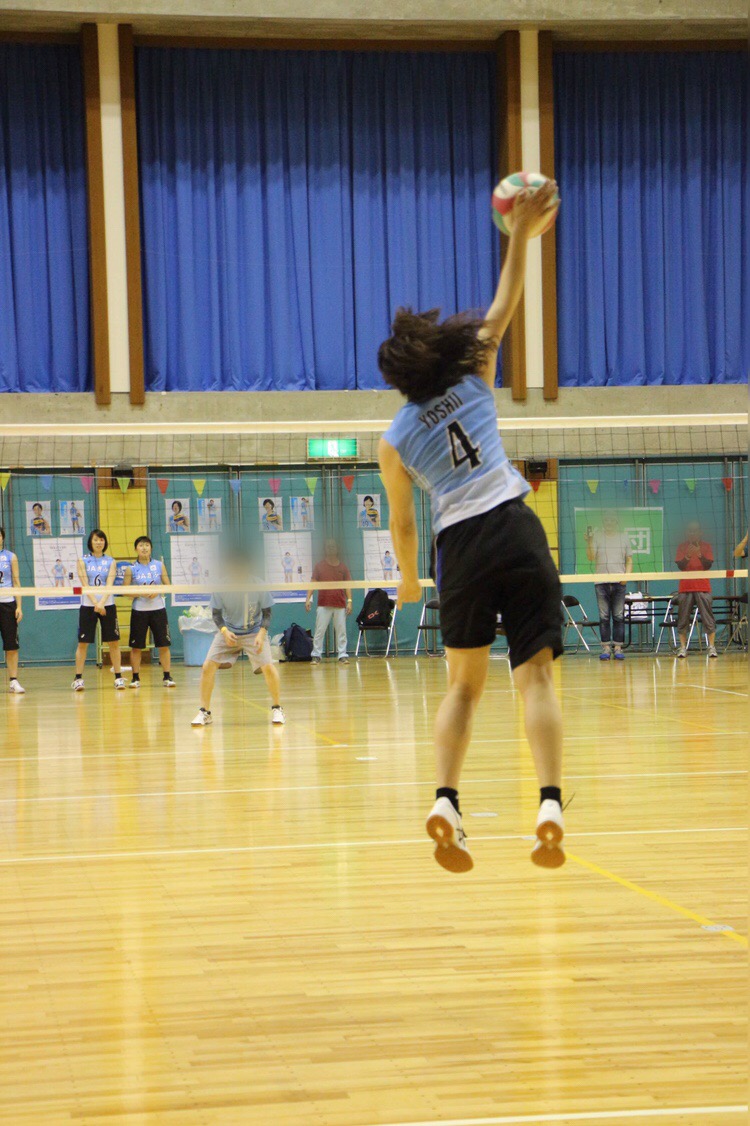 運動会の種目でよくある「玉入れ競争」のバレーボールバージョン。コート外からコート中心に設置されているカゴにバレーボールを入れる競技で、選手はオーバーパスでも連続で成功させていました。