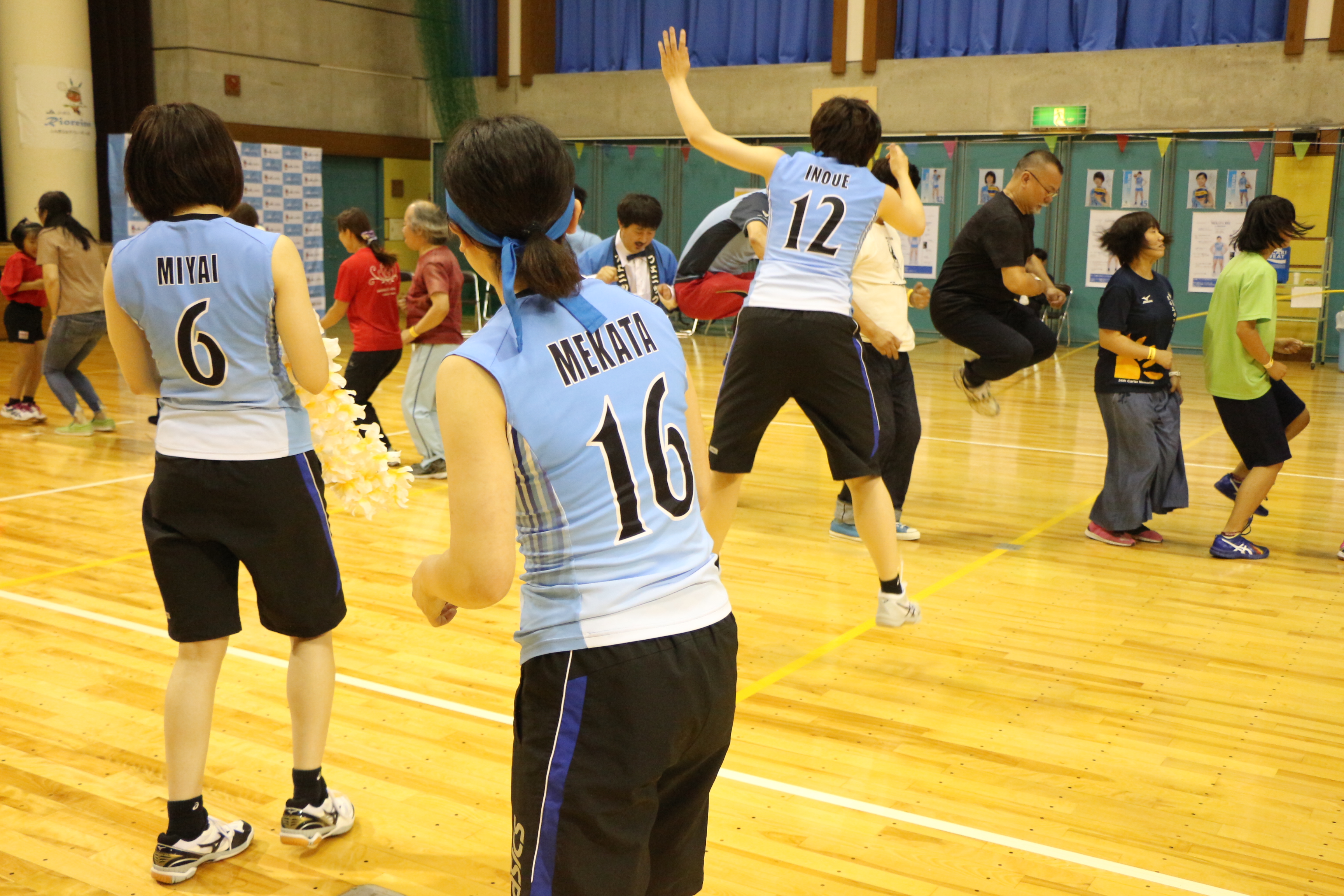 赤団、青団、黄団、緑団の4チームに分かれチーム対抗で7種目に挑戦。競技の勝敗が出ると、ファンの方々と選手がハイタッチをして喜ぶシーンが多くみられました。最終結果は、驚異的な団結力を見せつけた青団がぶっちぎりの優勝!笑顔の絶えない運動会となりました!