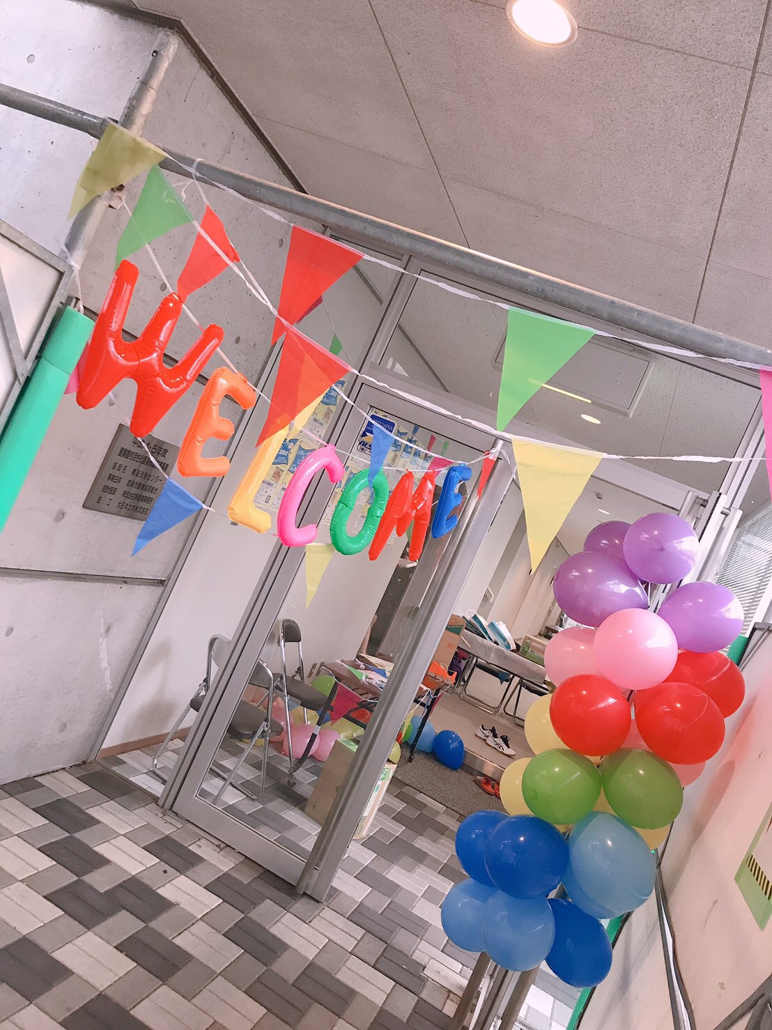 ウェルカムスペースとして飾り付けした入口で、選手自ら受付に立ち参加者をお出迎え。